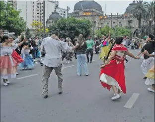 Un baile folclórico popular tuvo lugar ayer en el paseo céntrico de la capital, mientras que la jornada extra tendrá atractivas opciones